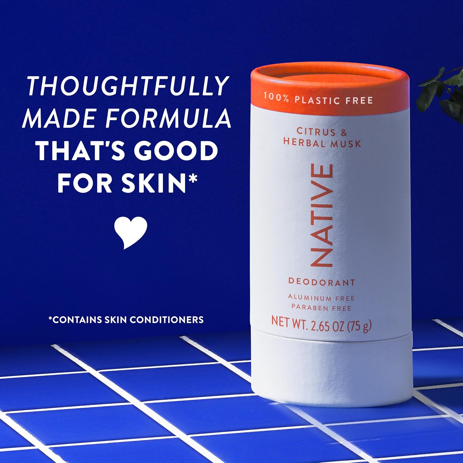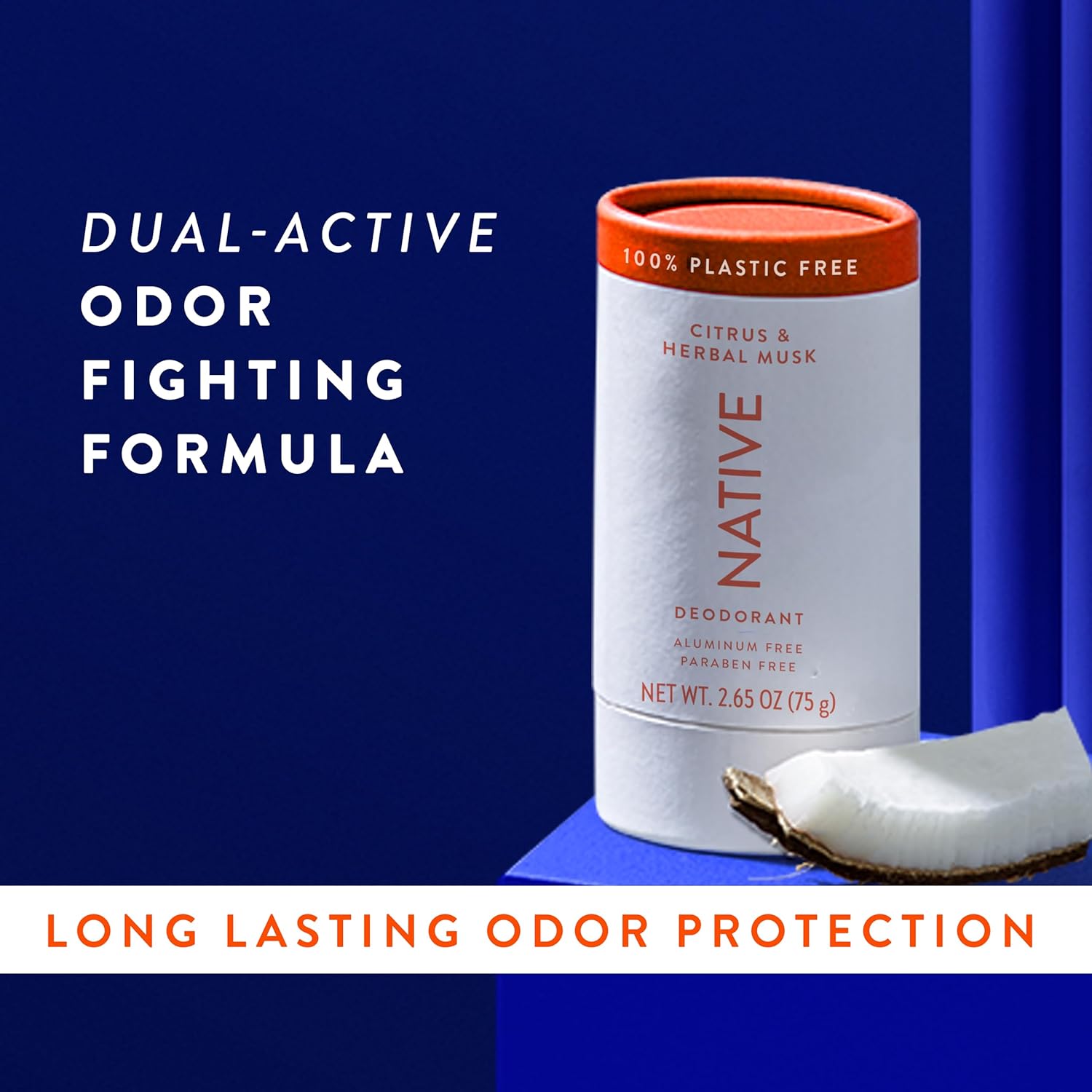 Native Plastic Free Deodorant for Women & Men, Aluminum Free
